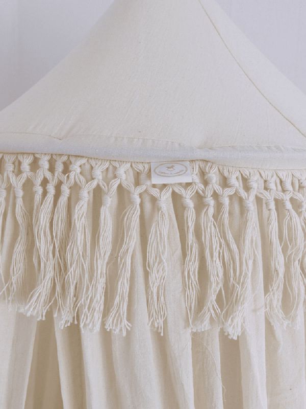 Käsintehty Boho Canopy sänkykatos, joka on näyttävä ja asettuu kauniisti. Ei liian hentoinen vaan laadukasta puuvillaa joka näyttää hyvälle sängyn koristuksena sekä lattialla leikkimaton tai leikkipesän päällä. Laadukas ja pitkäikäinen.