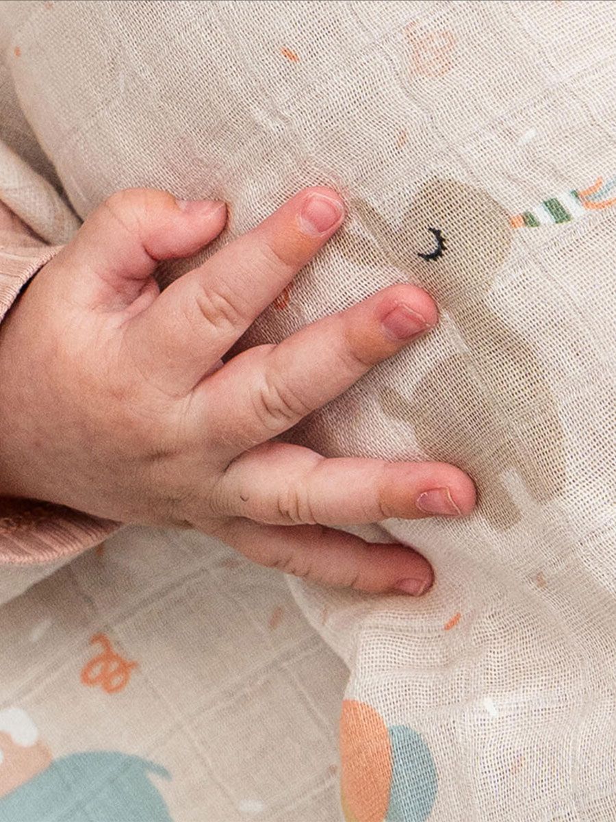 Reilun kokoinen 120x120 cm harsoliina sopii erityisen hyvin kapalointiin. Kapalointi auttaa vauvaa rauhoittumaan ja luo turvallisen tunteen, joka muistuttaa kohdun ympäristöä. Suuri musliiniharso tekee kapaloinnista helppoa ja mukavaa.Pehmeä, hengittävä ja turvallinen materiaali