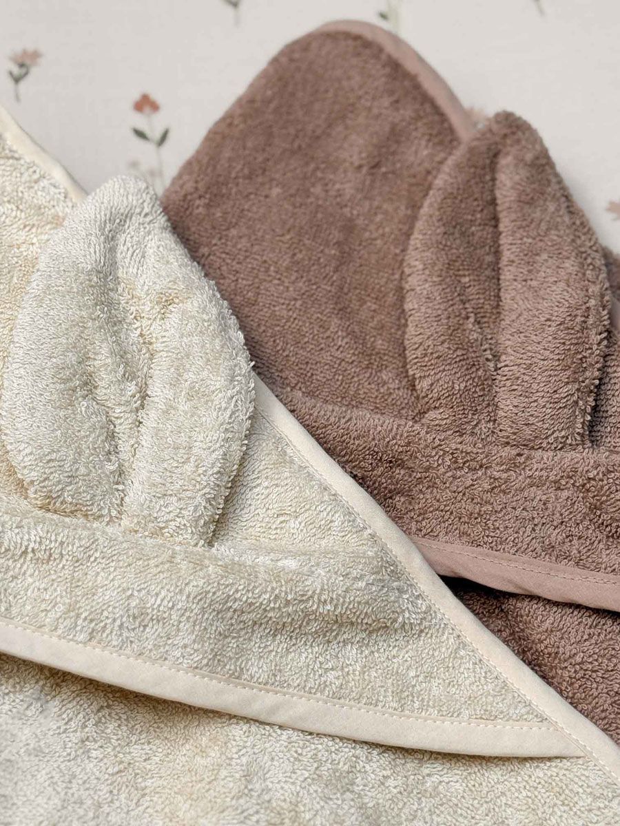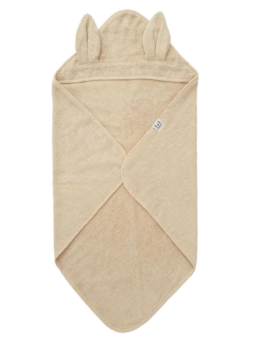Pehmeä ja suloinen pupunkorvainen hupullinen pyyhe vauvalle ja taaperolle! GOTS-sertifioidusta froteepuuvillasta valmistettu pyyhe kuivaa hellästi ja pitää lapsen lämpimänä kylvyn, uinnin tai suihkun jälkeen.
