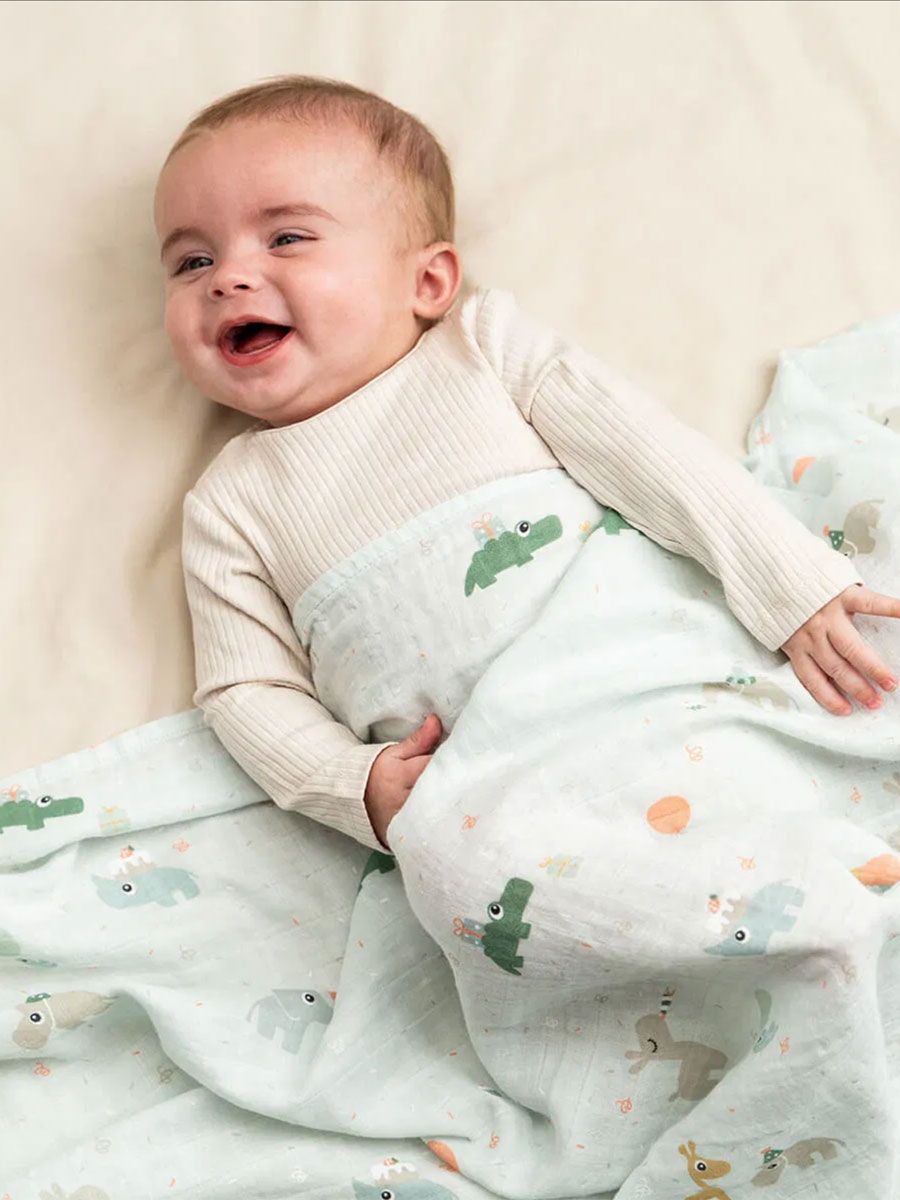 Harsoliina on konepestävä 60 asteessa, mikä puhdistaa tehokkaasti arjen tahrat ja pitää harsoliinan raikkaana käytössä.Kaunis ja käytännöllinen lahja vauvalle