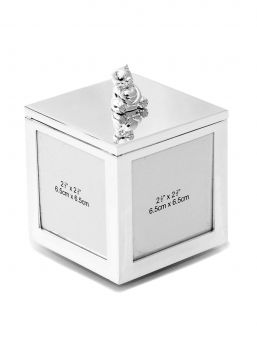 Kaunis hopeoitu soittorasia kaiverruksella, nalle