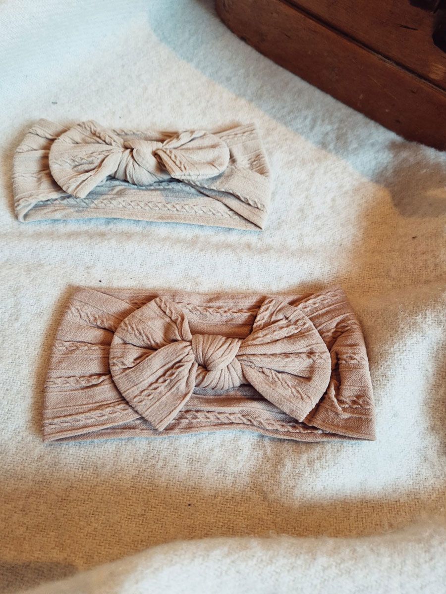 Leveä rusettipanta vauvalle - paketissa kaksi kaunista luonnon sävyä
