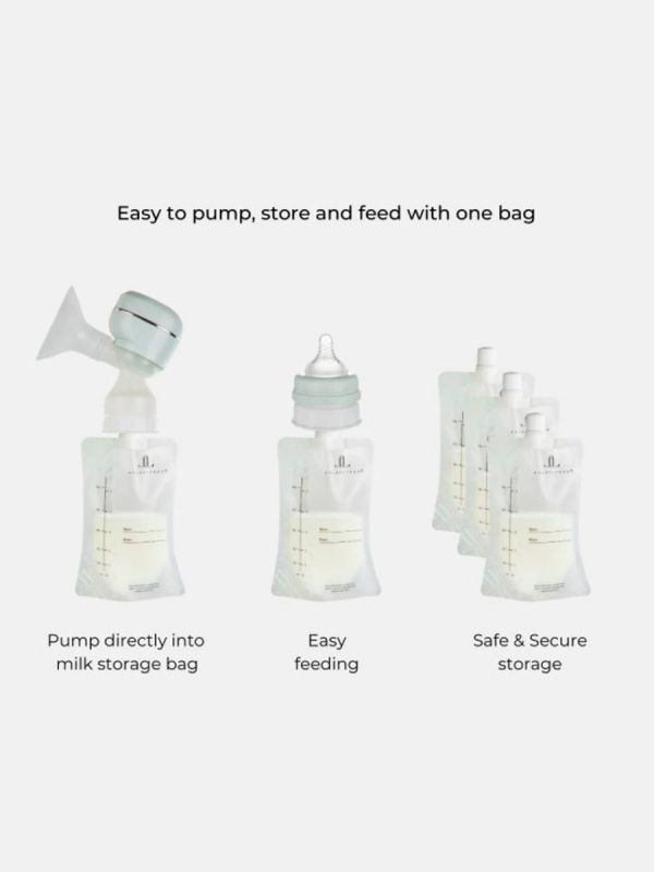 Helppokäyttöisten ja hygieenisten äidinmaidon säilytyspussien avulla säilytät, suojaat ja pakastat arvokkaan rintamaidon. Pussit ovat heti valmiita käyttöön, ne on valmiiksi sterioituja ja täysin vuotamattomia. Voit pumpata maidon suoraan pussiin Lola&Lykke sähkökäyttöisellä rintapumpulla ja syöttää suoraan pussista kiinnittämällä siihen Lola&Lykke adapteri ja tuttipää.
