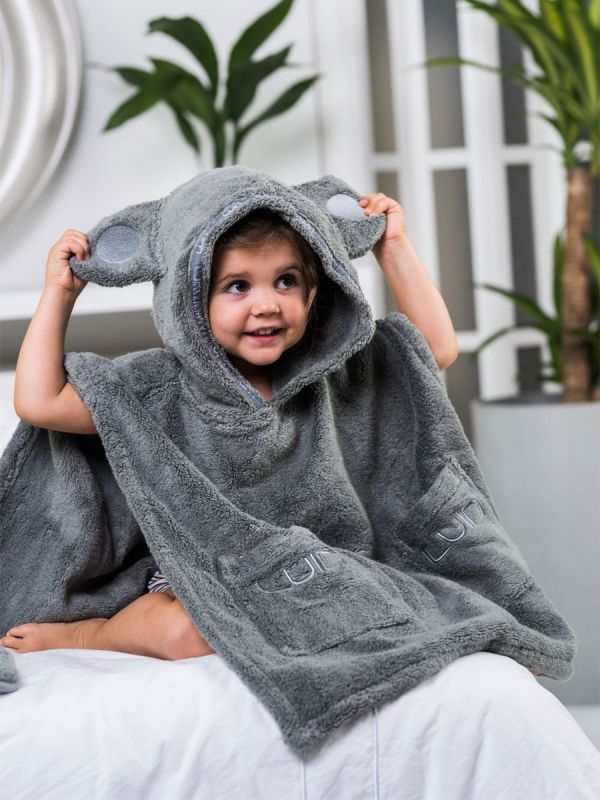 Luin Living Ponchopyyhe on käytännöllinen ja pehmeä valinta koko perheelle, joka kuivattaa tehokkaasti ja pitää pään suojassa suihkun jälkeen. Skandinaavinen design, söpöt korvat ja turvallinen Öko-tex sertifikaatti tekevät tästä pyyhkeestä sekä tyylikkään että ekologisen vaihtoehdon.