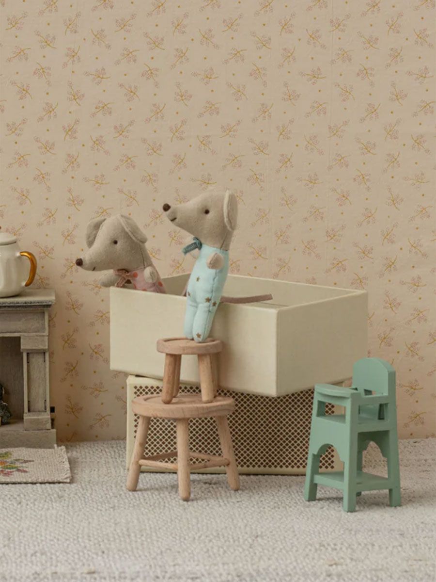 Maileg-vauvakaksoset sopivat yhteen kaikkien Maileg-huonekalujen ja tarvikkeiden kanssa, joten lapsi voi rakentaa oman pienen kodin, nukkumaanmenorutiinit ja arjen leikit kuin oikeassa elämässä.