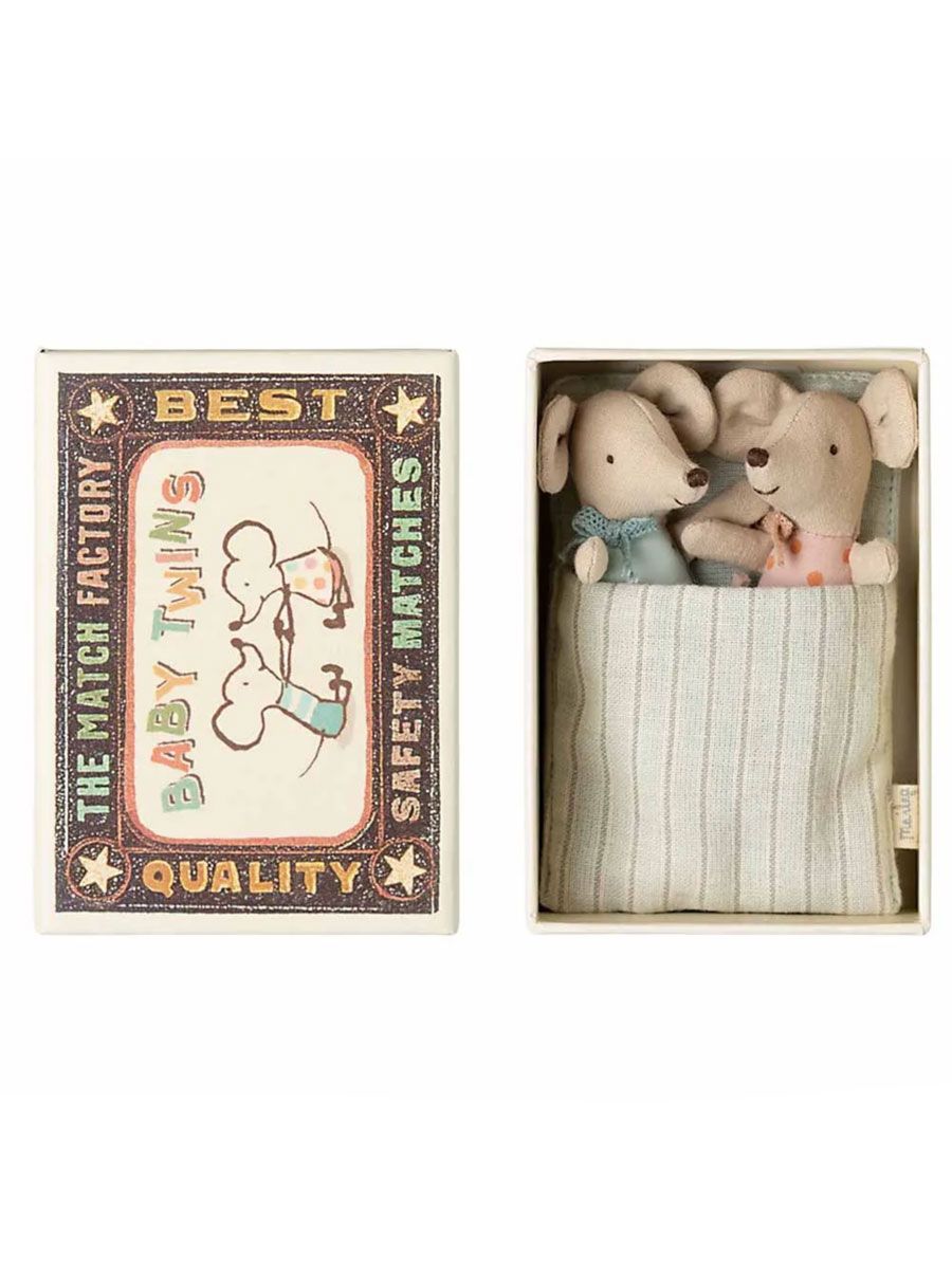Mailegin hurmaavat vauvakaksoset ovat klassikko, joka ilahduttaa sekä lapsia että aikuisia. Suloisessa tukevarakenteisessa rasiassa nukkuvat kaksi pientä hiirivauvaa omissa makuupusseissaan. Kaksosilla on päällään pehmeät, yksityiskohtaiset vauvapuvut, jotka tuovat leikkiin lämpöä ja tarinallisuutta.