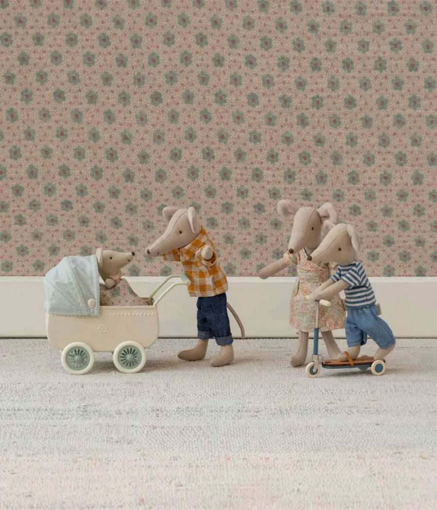 Tämä Maileg vaunut mintunvihreä ja vauvahiiri -setti on täynnä nostalgista viehätystä, laatua ja yksityiskohtia, jotka ovat tehneet Mailegista rakastetun lelusarjan ympäri maailmaa.