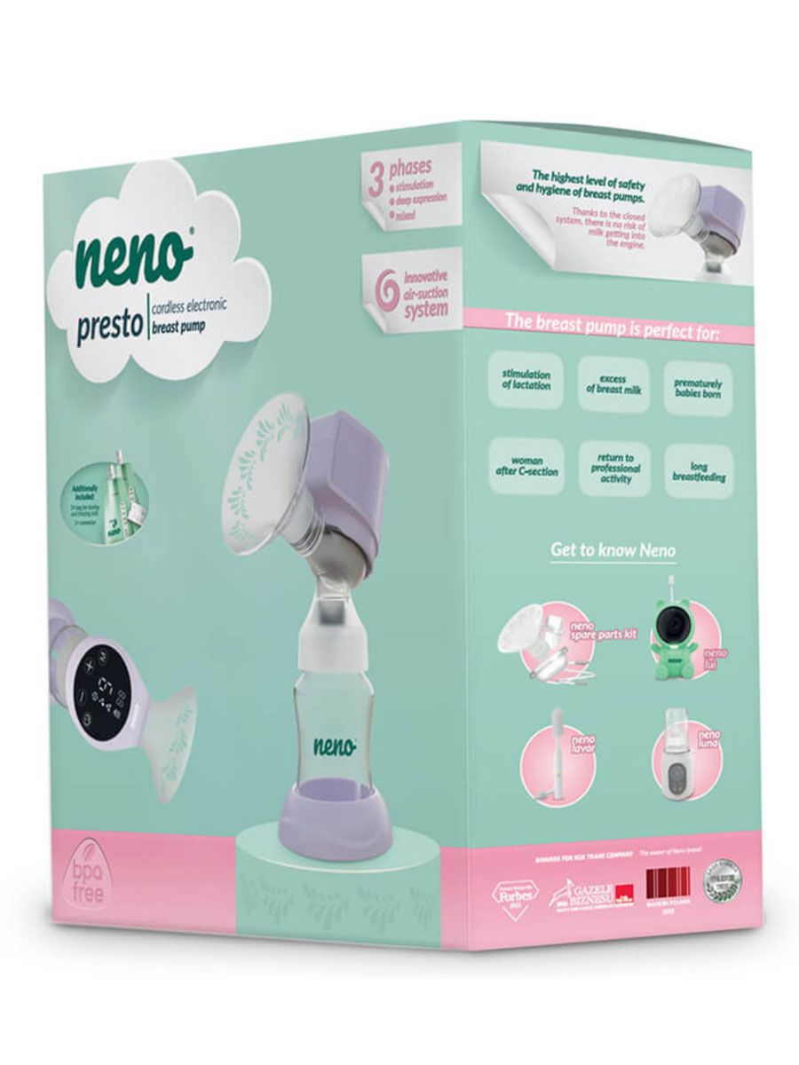 Neno Presto sähkökäyttöinen rintapumppu on suunniteltu helpottamaan imettävän äidin arkea silloin, kun haluat yhdistää joustavuuden, tehokkuuden ja mukavuuden samaan laitteeseen.