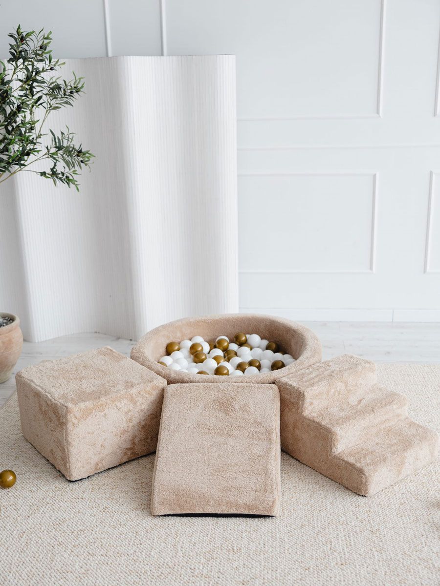 Pehmustettu Pallomeri & Leikkisetti – Teddy Bear Beige on täydellinen ratkaisu kotiin, jossa arvostetaan pehmeitä materiaaleja, turvallisuutta ja lasten kehitystä tukevaa leikkiä.