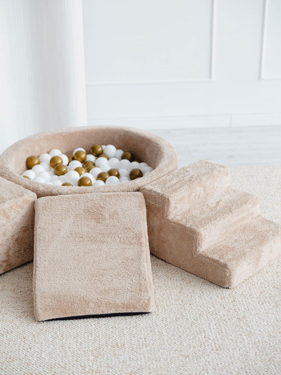 Pehmustettu pallomeri, leikkialusta, liukumäki ja portaat - Teddy Beige