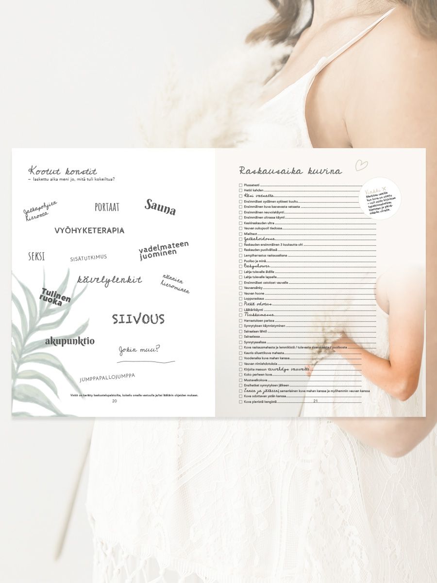 Vaaleansävyiseen Pieni & Täydellinen - vauvakirjaan voit tallentaa rakkaat muistosi odotus- ja vauva-ajasta aina lapsen kouluikään saakka. Vaaleansävyinen vauvakirja sopii yhtä hyvin tytölle kuin pojalle kuvien ja värisävyjen puolesta. Kirja on suunniteltu sopivaksi tekstien puolesta kaikkiin perhemuotoihin, myös sateenkaariperheille.Kirjassa on paljon ihania yksityiskohtia; muistilistoja eri ajanjakson kuville (raskausaika, vauva-aika, taaperoaika) ja sairaalakassille, sekä nimi/kastejuhliin soveltuva vieraskirjan aukeama. Kirjan lopussa erilliset kirjesivut, joihin vanhemmat / lapsen läheiset voivat kirjoittaa oman kirjeen lapselle. Kirjaan on lisätty täyttämistä helpottavia listoja, vertailuja ja kysymyksiä - aina 7 ikävuoteen asti. Kirja ohjaa sinua eteenpäin täyttämisessä, jolloin kirja tulee helpommin ja vaivattomammin täytettyä isommissakin perheissä kaikille lapsille. Kirjassa on valkoinen kirjanmerkkinauha helpottamassa merkitsemistä täytettyyn kohtaan.