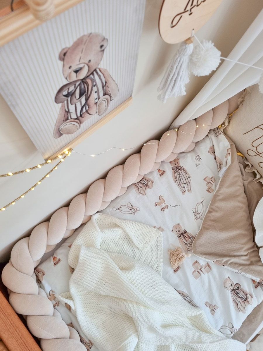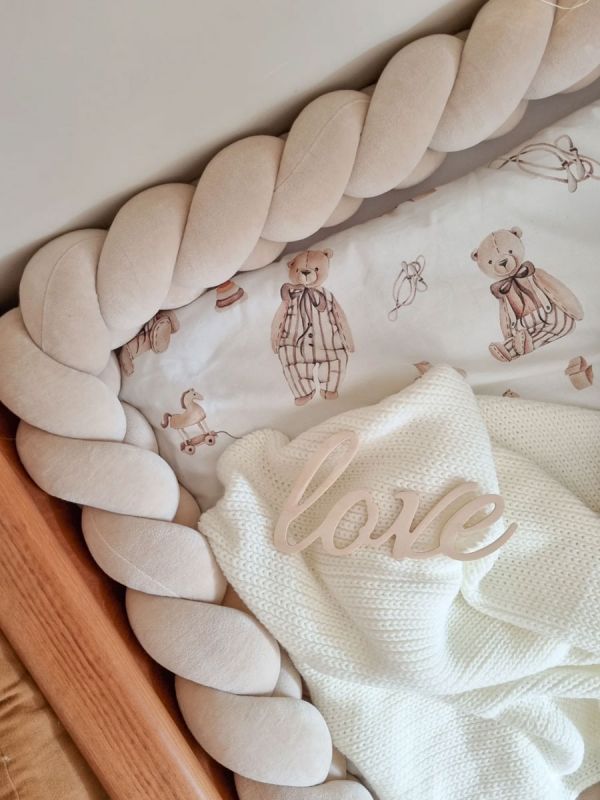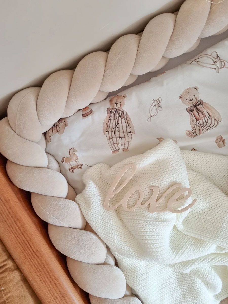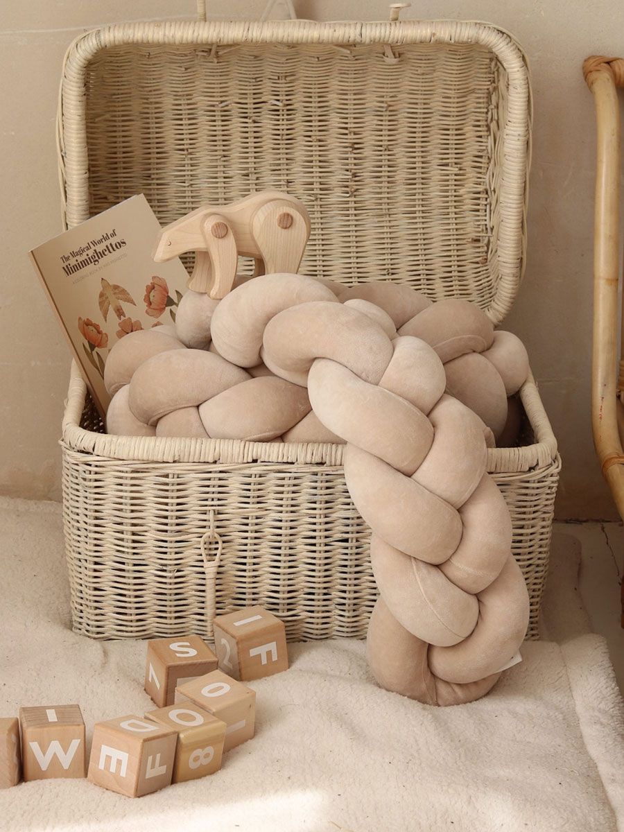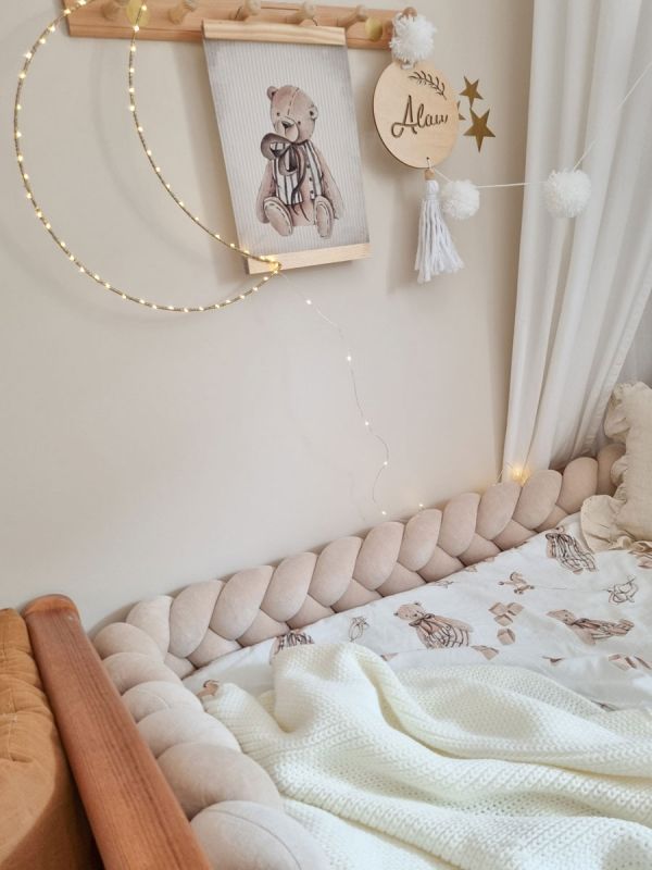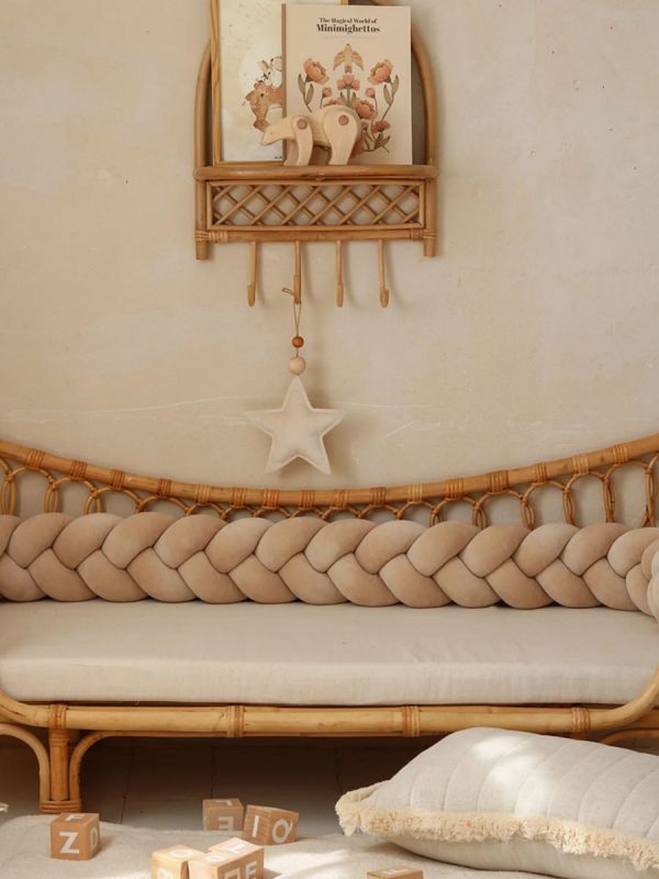 Pinnasängyn palmikko reunapehmuste – käsintehty, Velvet Beige
