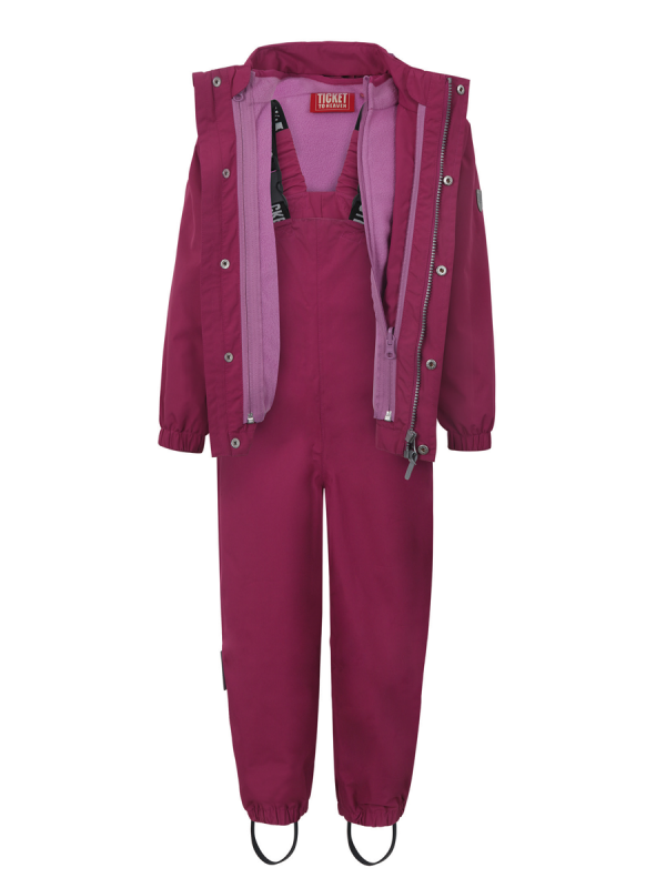 Ticket to Heaven malliston suositussa Plain rain asussa on takin sisällä irroitettava fleecevuori. Voit siis ilmojen mukaan katsoa millainen takki soveltuu käyttöön. Housuissa myös osittainen fleece vuori polveen saakka.