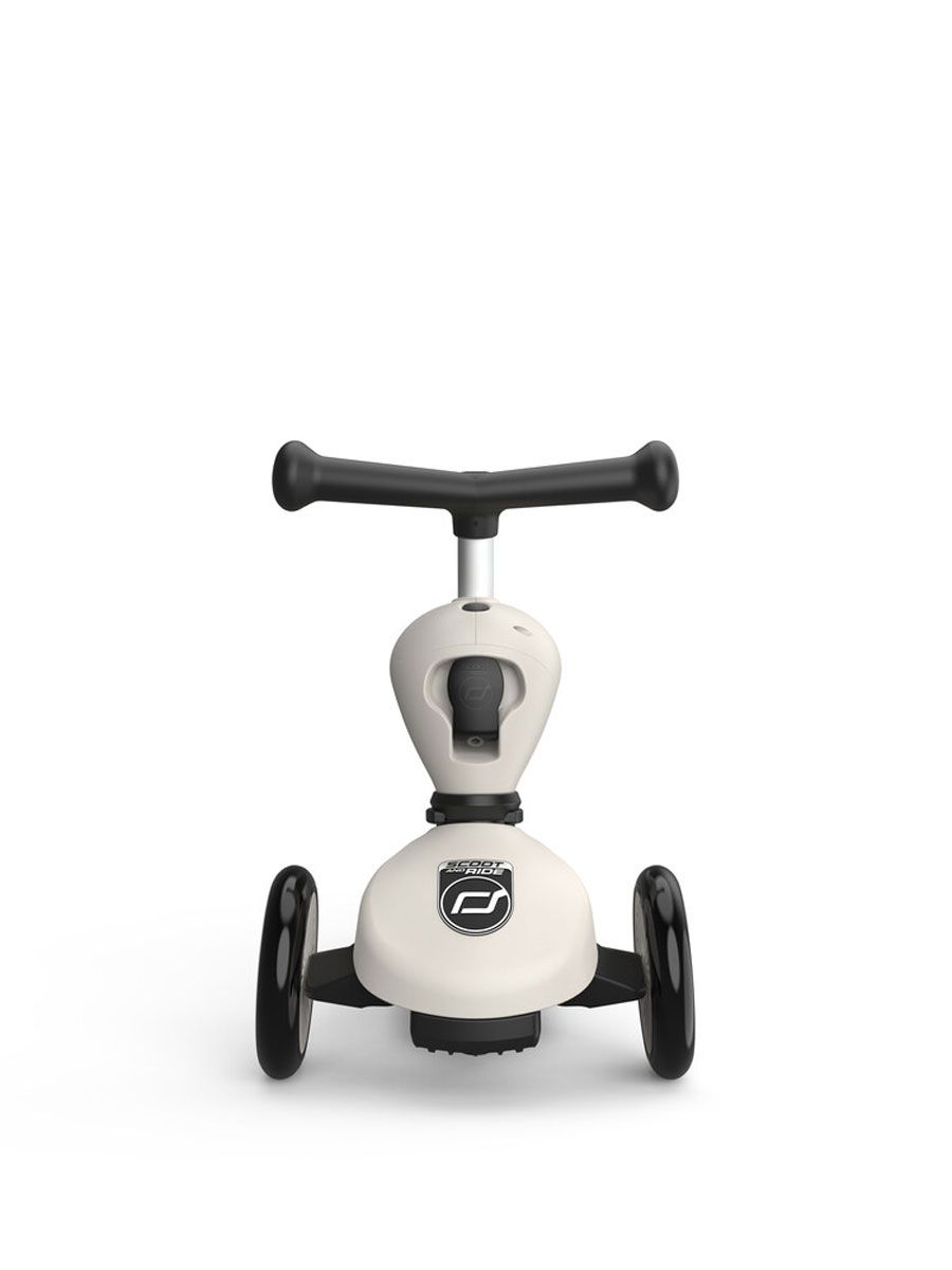 Tässä tulee perheen pienimmän vauhdikkain kaveri! Scoot & Ride Highwaykick 1 on superhauska 2-in-1-potkulauta, joka muuntautuu hetkessä istuttavasta potkulaudasta klassiseksi potkulautailun mestariksi — ilman työkaluja ja turhaa säätöä.