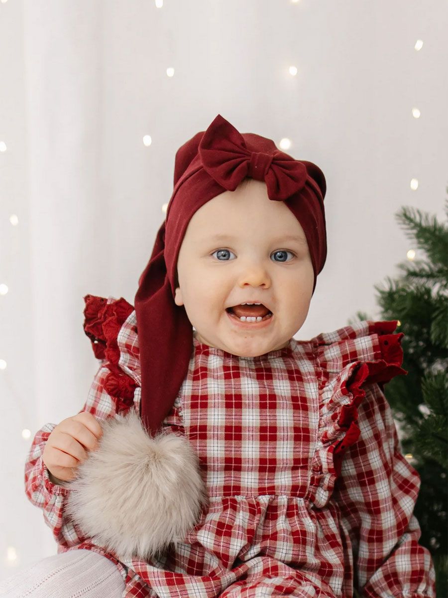 Kaunis ja pehmeä tonttulakki vauvalle ja lapselle sävyssä Punainen tuo joulun tunnelman esiin heti päähän laitettaessa. Joustava tonttulakki on valmistettu Öko-Tex100-sertifioidusta puuvillasta ja istuu täydellisesti pienimpienkin päätä myöten. Saatavana suloisella rusetilla tai ilman – täydellinen joulukuviin ja lahjaksi.
