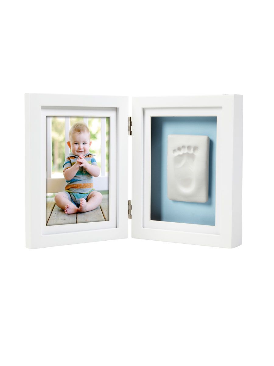 Babyprints Deluxe Ram on ylellinen, valkoinen puukehys, johon saat talletettua vauvasi kädenjäljen tai jalanjäljen sekä valokuvan kauniiksi kokonaisuudeksi. Täydellinen lahja ristiäisiin, babyshoweriin tai omaksi muistoksi koko elämän ajaksi.