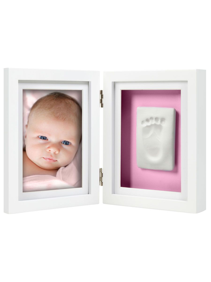 Suloiseen Pearlhead kehykseen voit painaa vauvan pienen käden tai jalanjäljen muistoksi. Paina vauvan käsi myrkyttömään, pehmeään saveen tallentaaksesi jäljen muistoihin. Savi kuivahtaa nopeasti ja voit asettaa teoksen kehyksiin.