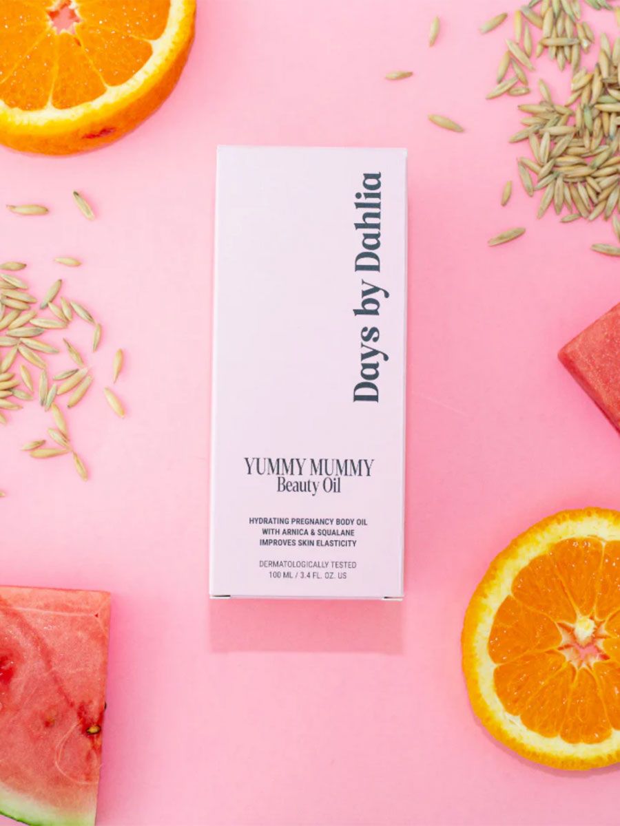 Yummy Mummy Beauty Oil on tehokkaasti kosteuttava ja nopeasti imeytyvä raskausajan ihoöljy, joka pitää kasvavan vatsan ihon pehmeänä, joustavana ja kimmoisana – ehkäisten raskausarpia ja helpottaen kutinaa.